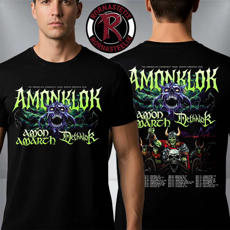 Welcome to Rornasteelix – Trendy Apparel Inspired by Amon Amarth and Dethklok Band Amonklok Conquest Tour North America 2026 Schedule Dates Unisex T Shirt Two Sided
