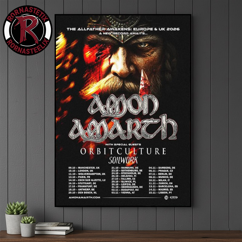 Product Highlights – Wall Art Featuring Amon Amarth The Allfather Awakens Europe And UK 2026 Tour Schedule Tour Dates Poster Canvas Decor