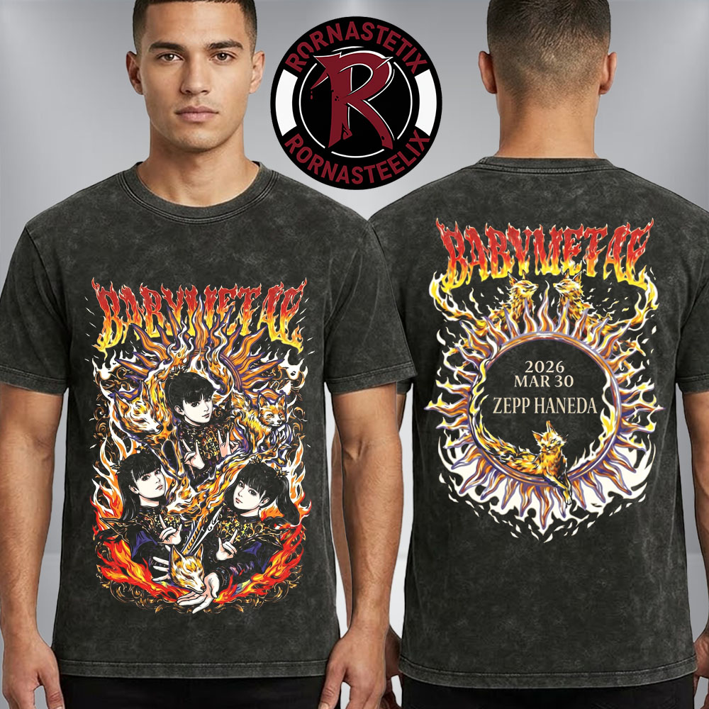 To begin with, this is the ultimate wearable tribute to one of the most exclusive stops on the 2026 global circuit. Specifically, you can now celebrate the power, skill, and legendary stage presence of the Metal Resistance with the Official Babymetal World Tour 2026 In Japan Merch Tee White Flame Show At Zepp Haneda On March 30 2026 Washed T Shirt. Since a headline show at a prestigious venue like Zepp Haneda represents a First-Class milestone for the fox-masked trio, this shirt serves as a mandatory collector’s item for fans ready to immortalize the “White Flame” spectacle. Whether you were in the center of the mosh pit or representing the One from across the globe, this tee ensures you carry the hype of the 2026 Japan tour with unmatched style.
