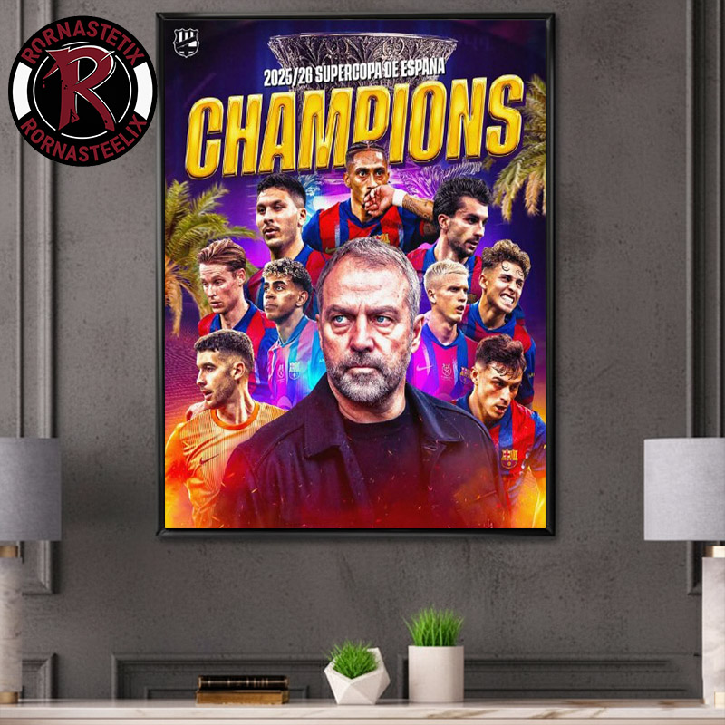 Ready to transform your space with powerful visual storytelling? Scroll up and click “Add to Cart” to make Celebrates Barcelona FC Champions 2025-26 Supercopa De Espana Poster Canvas Decor a unique centerpiece in your decor today.