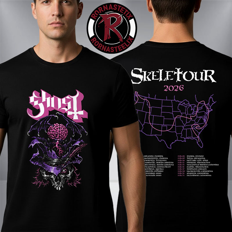 The Ghost “Skeletour” 2026 marks a new chapter in the band’s ever-evolving lore. This shirt perfectly captures the “macabre-meets-glam” aesthetic that Tobias Forge has perfected. It’s designed for the die-hard fan who wants to carry the memory of the heavy riffs and incense-filled arenas of 2026 long after the final encore of “Square Hammer.”