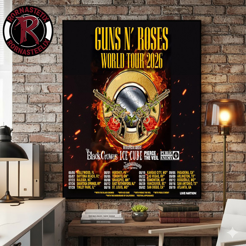 Ready to transform your space with powerful visual storytelling? Scroll up and click “Add to Cart” to make Guns And Roses World Tour 2026 Schedule Tour Dates Poster Canvas Decor a unique centerpiece in your decor today.