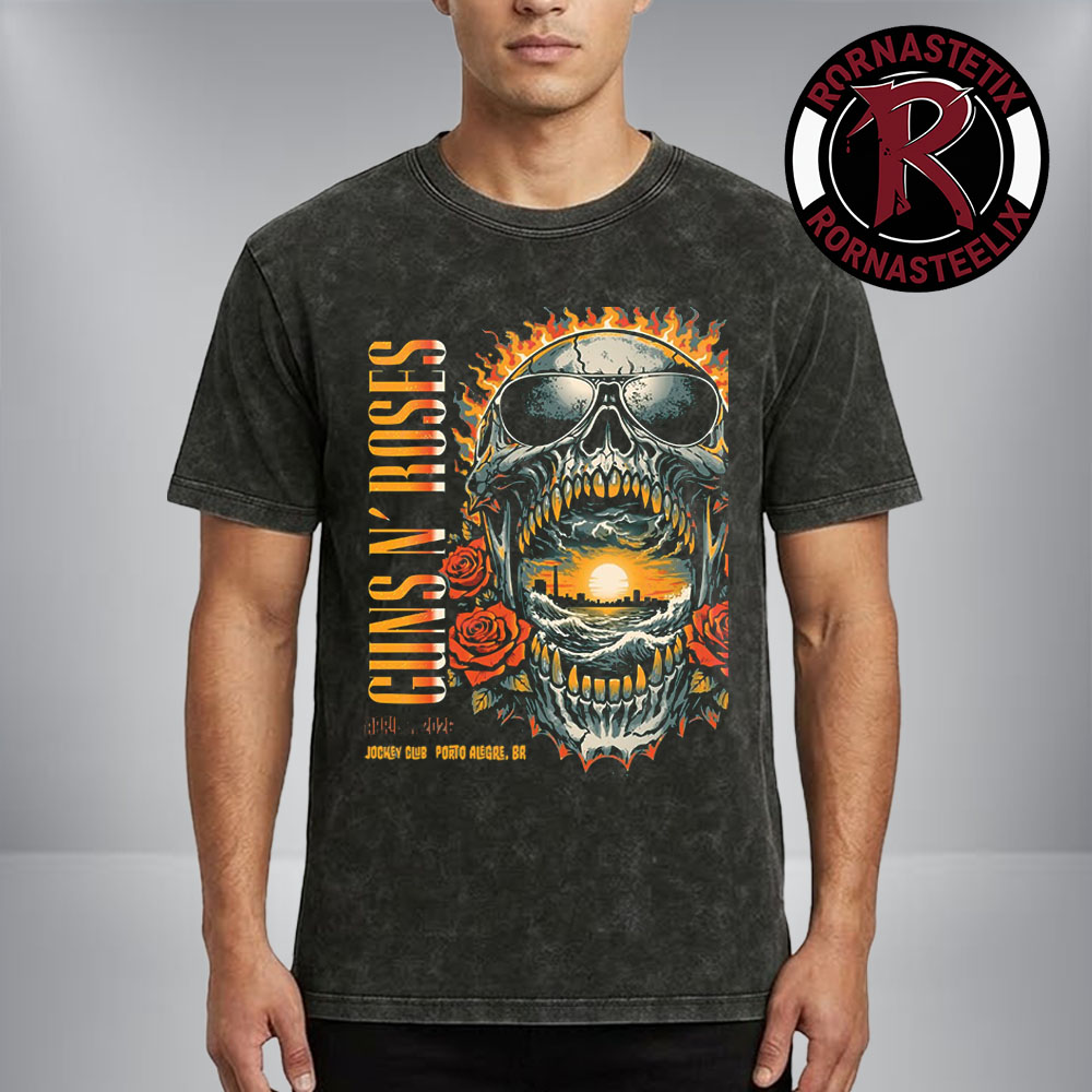 Enhance your collection today. Scroll up and click “Add to Cart” to get your Guns N Roses 2026 Event Poster At Jockey Club On April 1 2026 Porto Alegre Brazil Washed T Shirt now.