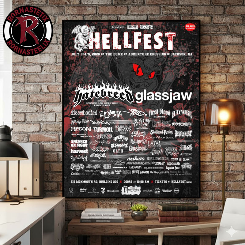 Ready to transform your space with powerful visual storytelling? Scroll up and click “Add to Cart” to make Hellfest Hardcore Festival 2026 Line Up Poster at The Dome at Adventure Crossing in Jackson NJ On July 3 4 5 2026 Poster Canvas Decor a unique centerpiece in your decor today.