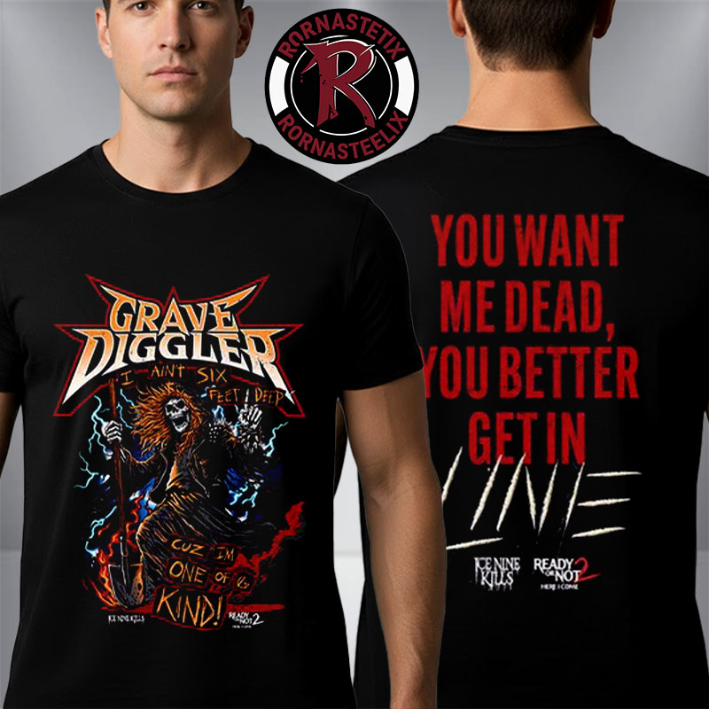 Product Overview: Ice Knife Kills x Ready Or Not 2 Grave Diggler Get In Line Unisex T Shirt Two Sided