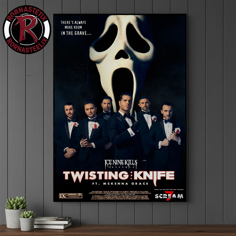 Capture the chilling atmosphere of the February 27, 2026 release with the official Ice Nine Kills X Scream 7 “Twisting The Knife” Premiere Poster Canvas. This isn’t just a poster; it’s a high-definition gallery piece that commemorates the brutal intersection of Spencer Charnas’ musical vision and the legendary Scream franchise.