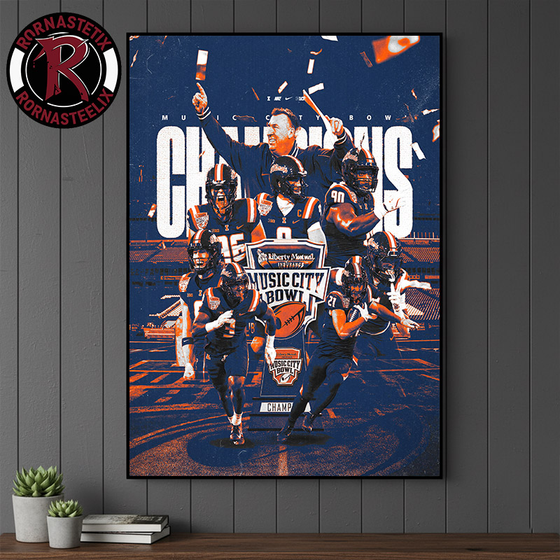 Product Highlights – Wall Art Featuring Illinois Fighting Illini Celebrates Poster Music City Bowl Champions 2025 Back To Back Poster Canvas Decor