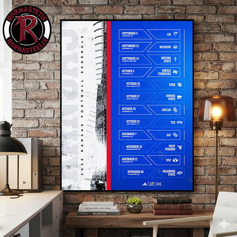 Ready to transform your space with powerful visual storytelling? Scroll up and click “Add to Cart” to make Kansas Jayhawks Football Football NCAA Schedule Season 2026 Poster Canvas Decor a unique centerpiece in your decor today.