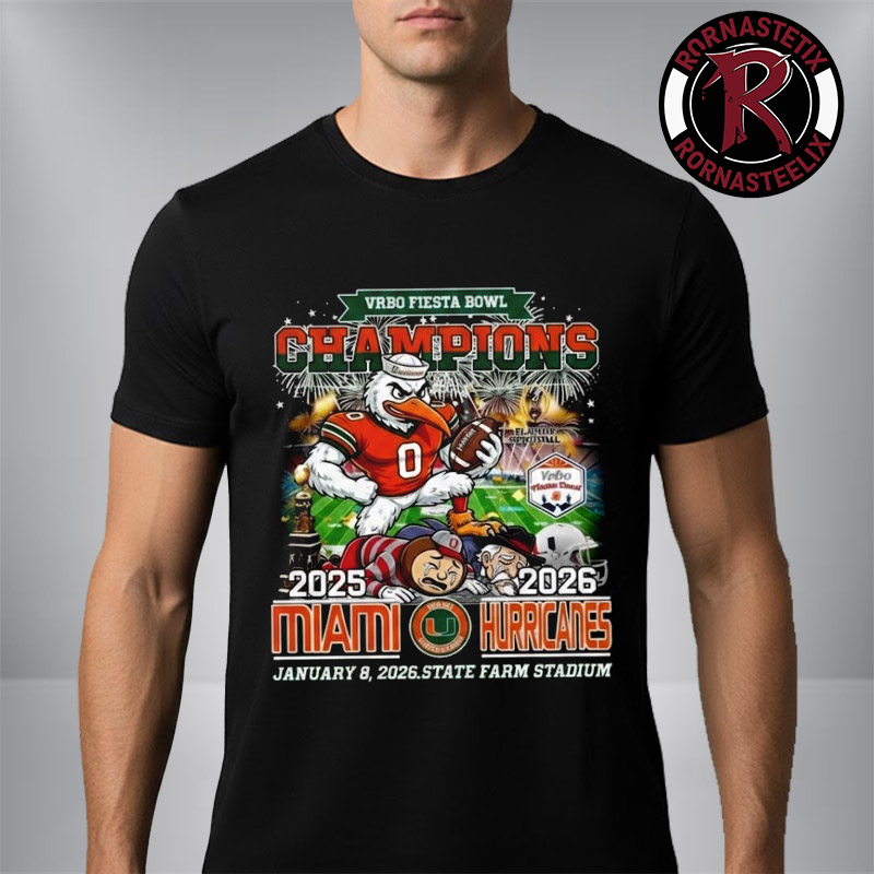 Welcome to Rornasteelix – Trendy Apparel Inspired by Miami Hurricanes Vrbo Fiesta Bowl Champions 2025 2026 Mascot Tee State Farm Stadium Unisex T Shirt