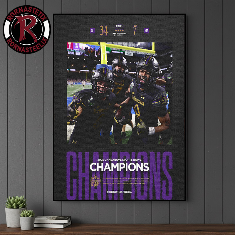 Product Highlights – Wall Art Featuring Northwestern Wildcats Champions 2025 Gameabove Sports Bowl Poster Canvas Decor