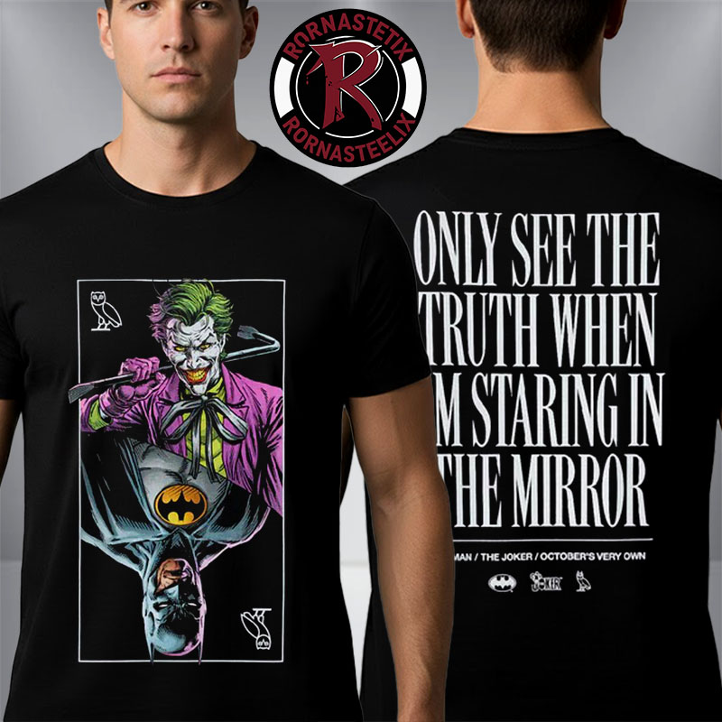 Product Overview: OVO x Batman x Joker Collab Merch Mirror October's Very Own Unisex T Shirt Two Sided