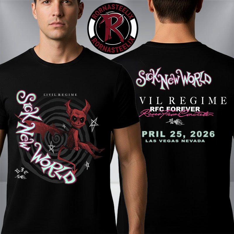 Step into the world of Rornasteelix, your go-to destination for trendy and expressive fashion inspired by Sick New World x Civil Regime 2026 Eivil Regime Merch Las Vegas Nevada On April 25 2026 Unisex T Shirt Two Sided. Explore our diverse collection of premium-quality apparel for men, women, and kids — including t-shirts, hoodies, sweatshirts, long sleeves, tank tops, and inclusive plus-size options. Whether you’re celebrating the holidays, following viral trends, or repping your favorite pop culture icons, our curated designs help you wear what you love with confidence.
