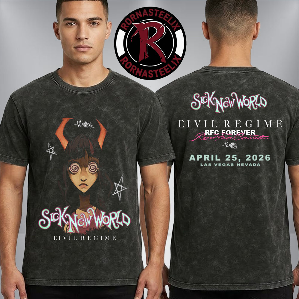 To begin with, this is the ultimate wearable tribute to the most aggressive and artistically significant festival collaboration of the decade. Specifically, you can now capture the industrial-grit and alternative energy of the stage with the Official Sick New World x Civil Regime 2026 “Eivil Regime” Washed T Shirt. Since the 2026 partnership represents a First-Class milestone in the fusion of heavy music and luxury streetwear—bringing the iconic “Civil Regime” aesthetic to the heart of the Vegas desert—this garment serves as a mandatory collector’s item. Whether you are in the center of the mosh pit or are showcasing your streetwear authority from home, this tee ensures you carry the hype of this elite achievement with unmatched intensity.