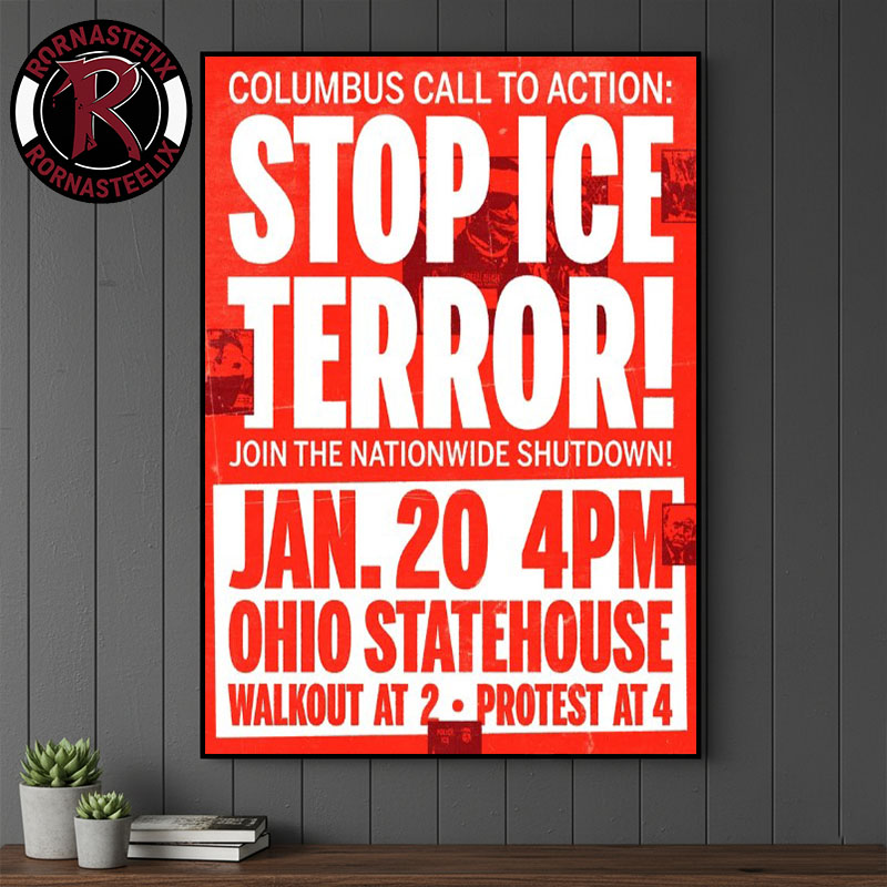 Product Highlights – Wall Art Featuring Stop Ice Terror Join The Nationwide Shutdown Columbus Call To Action January 20 2026 Poster Canvas Decor
