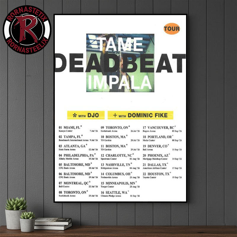 Ready to transform your space with powerful visual storytelling? Scroll up and click “Add to Cart” to make Tame Impala Deadbeat US Tour 2026 Schedule Tour Dates Poster Canvas Decor a unique centerpiece in your decor today.