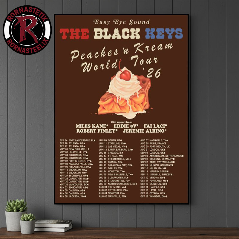 Ready to transform your space with powerful visual storytelling? Scroll up and click “Add to Cart” to make The Black Keys Peaches N Kream World Tour 2026 Schedule Tour Dates Poster Canvas Decor a unique centerpiece in your decor today.