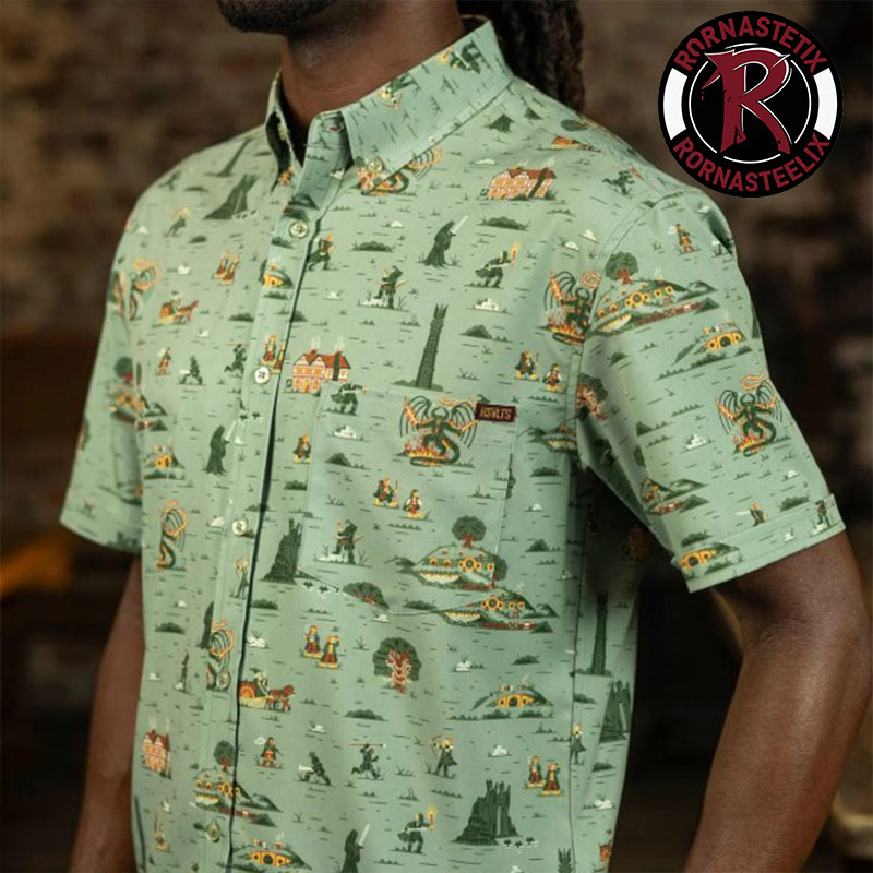 Step into Middle-earth with the Lord of the Rings x RSVLTS “The World Is Changed” Hawaiian Shirt. Featuring a stunning all-over print of iconic LOTR landscapes and symbols. Made with premium Kunuflexâ„¢ 4-way stretch fabric. Perfect for fans of Tolkien’s epic saga. Shop this limited-edition RSVLTS button-down today!