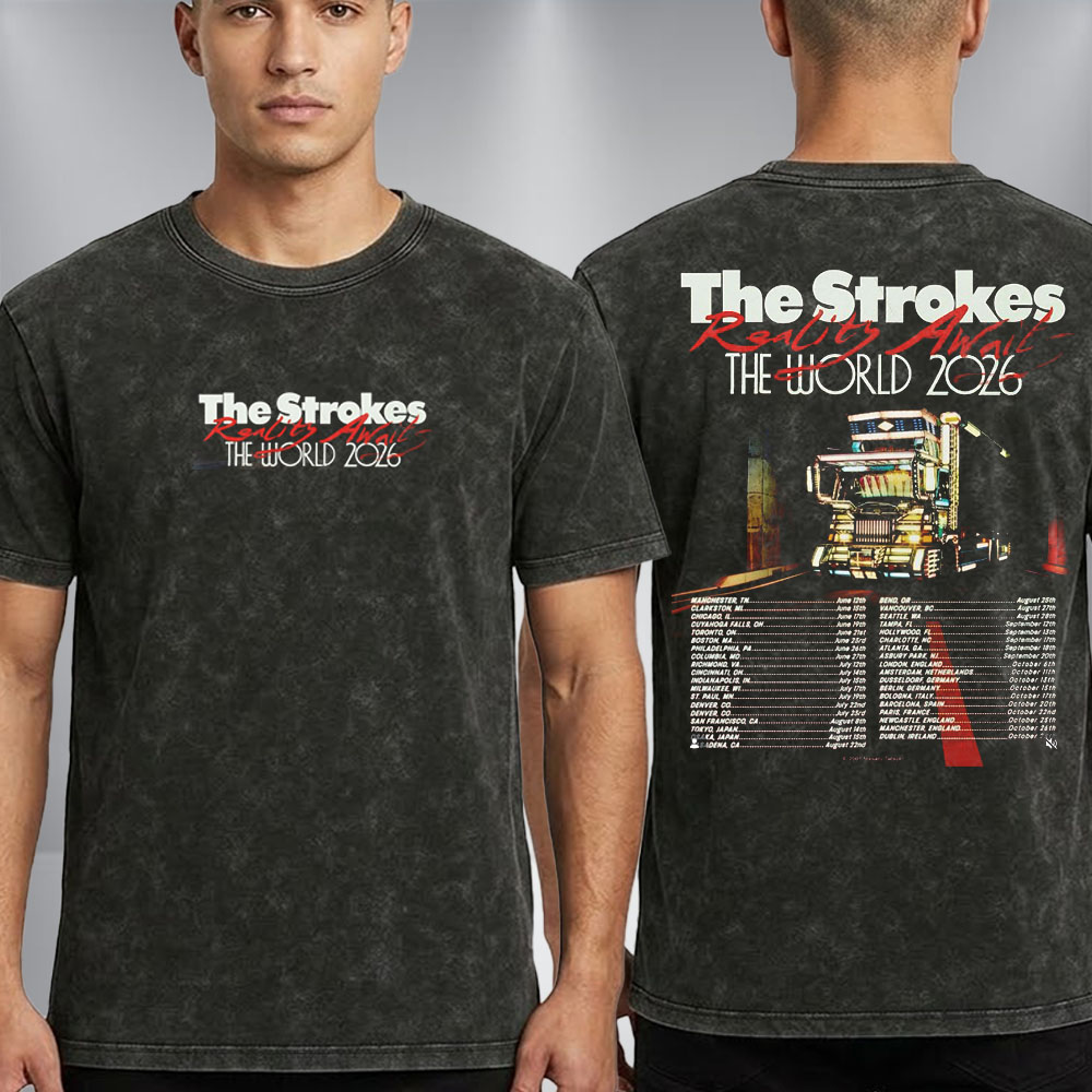Enhance your collection today. Scroll up and click “Add to Cart” to get your The Strokes Reality Awaits The World 2026 Schedule Tour Dates Washed T Shirt now.