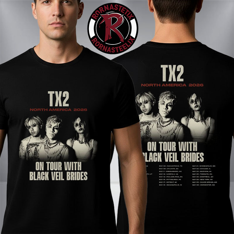 Welcome to Rornasteelix – Trendy Apparel Inspired by TX2 North America 2026 On Tour With Black Veil Brides Schedule Tour Dates Unisex T Shirt Two Sided