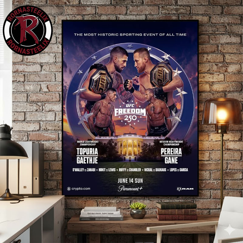 Ready to transform your space with powerful visual storytelling? Scroll up and click “Add to Cart” to make UFC Freedom 250 Poster For UFC White House The Most Historic Sporting Event Of All Time June 14 2026 Poster Canvas Decor a unique centerpiece in your decor today.