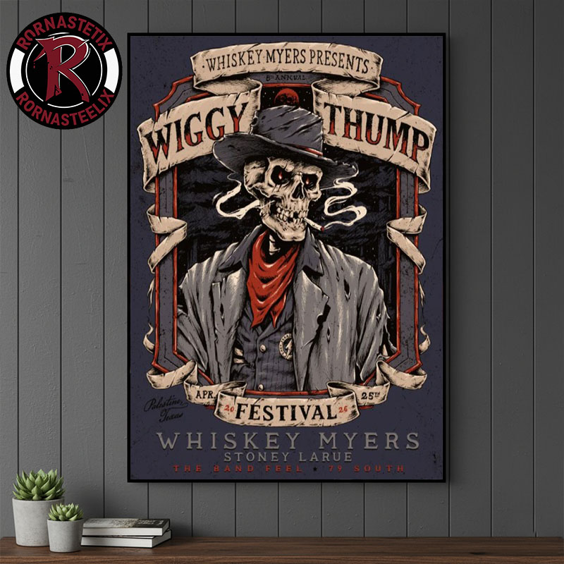 Ready to transform your space with powerful visual storytelling? Scroll up and click “Add to Cart” to make Wiggy Thump 2026 Festival Whiskey Myers Presents On April 25 In Palestine Texas Poster Canvas Decor a unique centerpiece in your decor today.