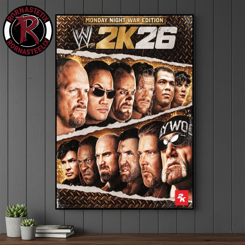 With the Monday Night War Edition of WWE 2K26 serving as the pinnacle of the 2026 game lineup, this decor piece captures the tension of the late 90s. The artwork bridges the gap between the two warring factions—showcasing the “Monday Night Raw” and “WCW Nitro” brands in a unified, cinematic display. It’s a visual “What If?” that celebrates the time when the industry was at its wildest.