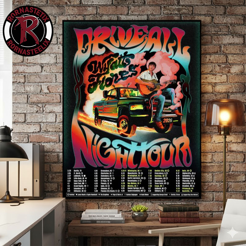 Ready to transform your space with powerful visual storytelling? Scroll up and click “Add to Cart” to make Wyatt Flores The Drive All Night Tour 2026 Venue Schedule Dates Poster Canvas Decor a unique centerpiece in your decor today.